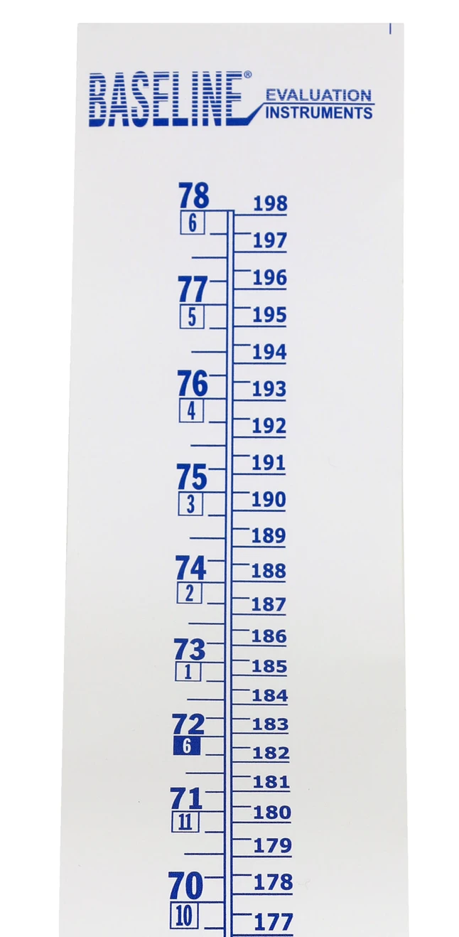 The Baseline Wall Growth Chart allows the user to measure height quickly and accurate. It measures height up to 6-1/2 feet (0-78 inches). Place the chart along a wall starting at floor level. The blue text makes the chart easy to read, even in low-lighting situations.