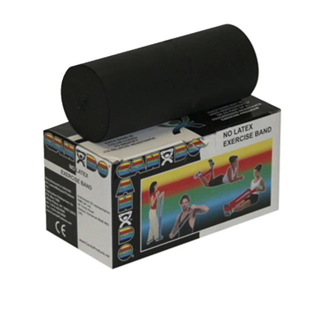 CanDo No-Latex X-Heavy Exercise Band in black is 100% latex-free and has a length of 6 yards. Sold individually.