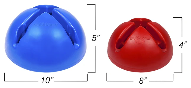 Multi-Domes take domes to the next level, to provide you with an even more versatile array of uses. Multi-Domes have a 10 inch diameter and a height of 5 inches. The fillable domes are constructed of a hockey-stick-tough ABS plastic, to withstand constant rugged institutional use. They’re light when empty, and very stable when filled (up to 9 lbs). Each Multi-Dome features a twist-lock, leak-proof fill cap on the bottom and can be filled with sand or water. Slots “pin” and hold all size hoops. Set includes 6 Multi-Domes with one in each color: Red, Yellow, Blue, Green, Purple and Orange. To order the Arch Gates please see item 021967.