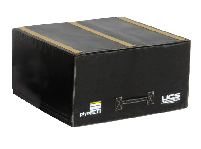 UCS Plyo-Safe G2 Plyo Block has strips of hook-and-loop fastener material on the bottom to enable stacking and prevent slippage during use. This 12 inch high block has stitched side handles to help with repositioning or stacking. Rectangular block made of 100% dense foam provides extra large landing surface and measures 30 x 36 inches. This dense foam will not break down, delaminate or soften and it’s covered with 21 ounce knife-coated vinyl with built-in bacterial inhibitor.